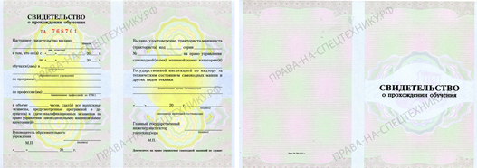 Свидетельство об обучении на конкретные категории прав на спецтехнику одобренное Гостехнадзором. Стоимость 5000 руб.