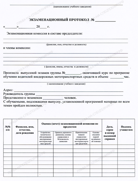 Протокол заседания аттестационной комиссии сдачи экзаменов и разрешения доступа к получению прав. Стоимость 2000 руб.
